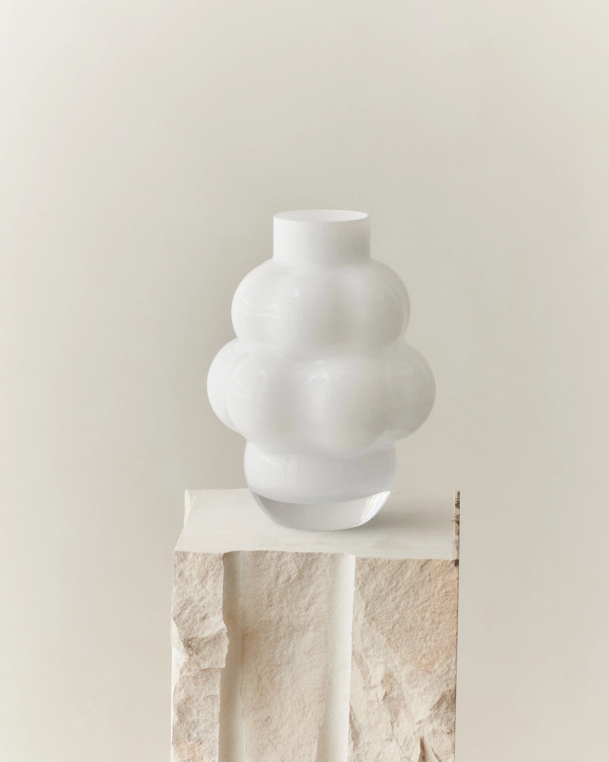 A true icon of LOUISE ROE, this vase draws inspiration from Venus of Willendorf - an ancient female figurine which celebrates fertility. With its illuminating presence, the Opal White variation elevates its environment.