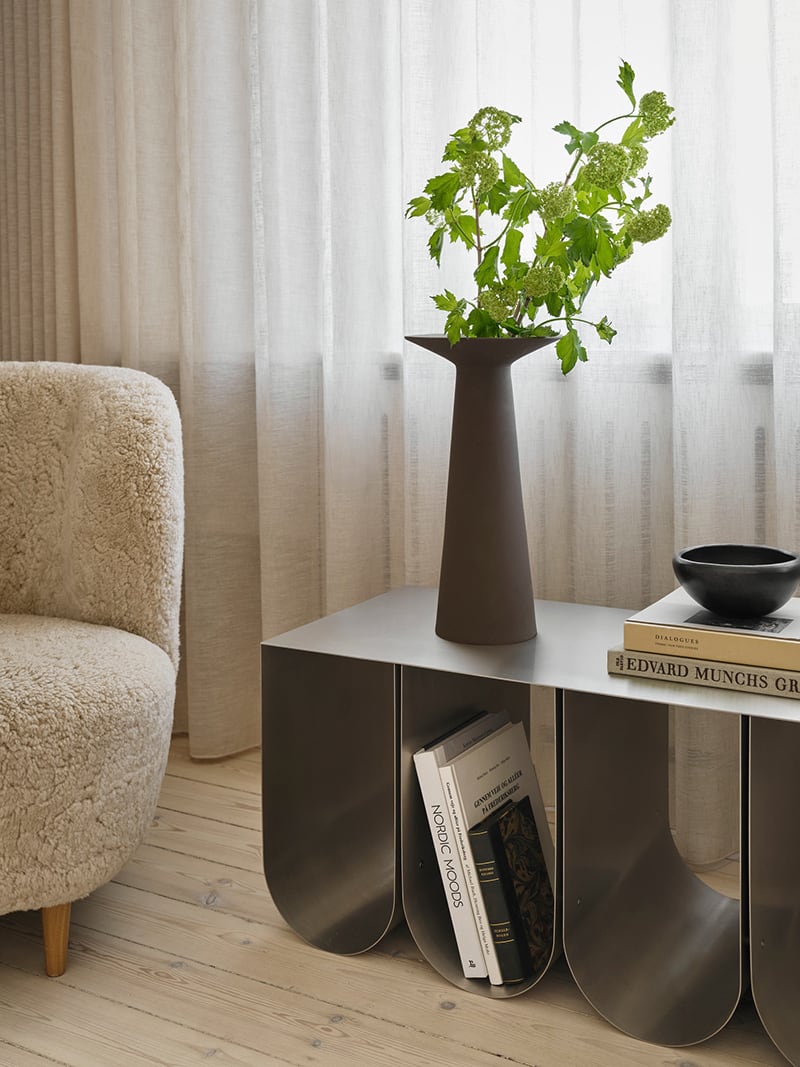 With its simple and sculptural design, the Collar Vase is a perfect example of Kristina Dam Studio’s philosophy of ‘Sculptural Minimalism’. Made from terracotta with a matt brown finish, it is glazed on the inside, making it waterproof and suitable for both wild bouquets and single branches. The Collar Vase is available in two sizes, each with a distinctive shape.