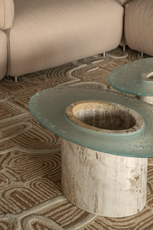 The Zenith Coffee Table makes a striking statement, where art and functionality come together in perfect harmony. The solid marble base provides a strong foundation, while the glass top, subtly textured on the inside, creates an intriguing play of depth and light. The marble base supports the glass in a way that makes it appear to float effortlessly, adding a sense of airiness and luxury to the design. This seamless blend of materials transforms the Zenith Coffee Table into a visual masterpiece that commands attention in any space. With its unique and bold design, the Zenith Coffee Table is the perfect choice for those looking to enrich their interior with a timeless, artistic touch that never goes unnoticed.