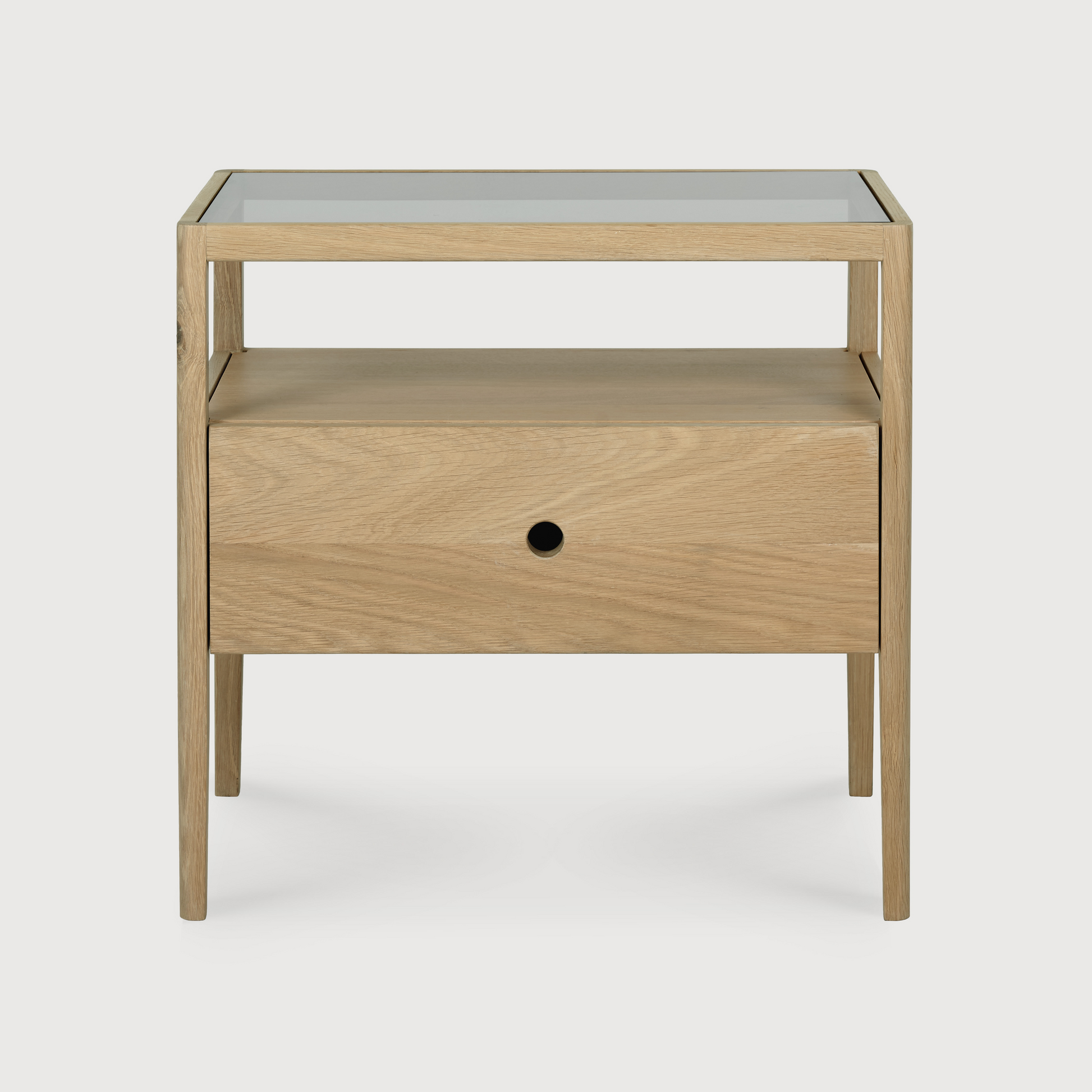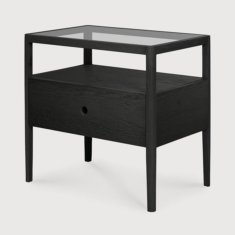 With its one drawer, open space and slightly tapered legs, the Spindle bedside table is the perfect no-nonsense companion for the striking Spindle bed.