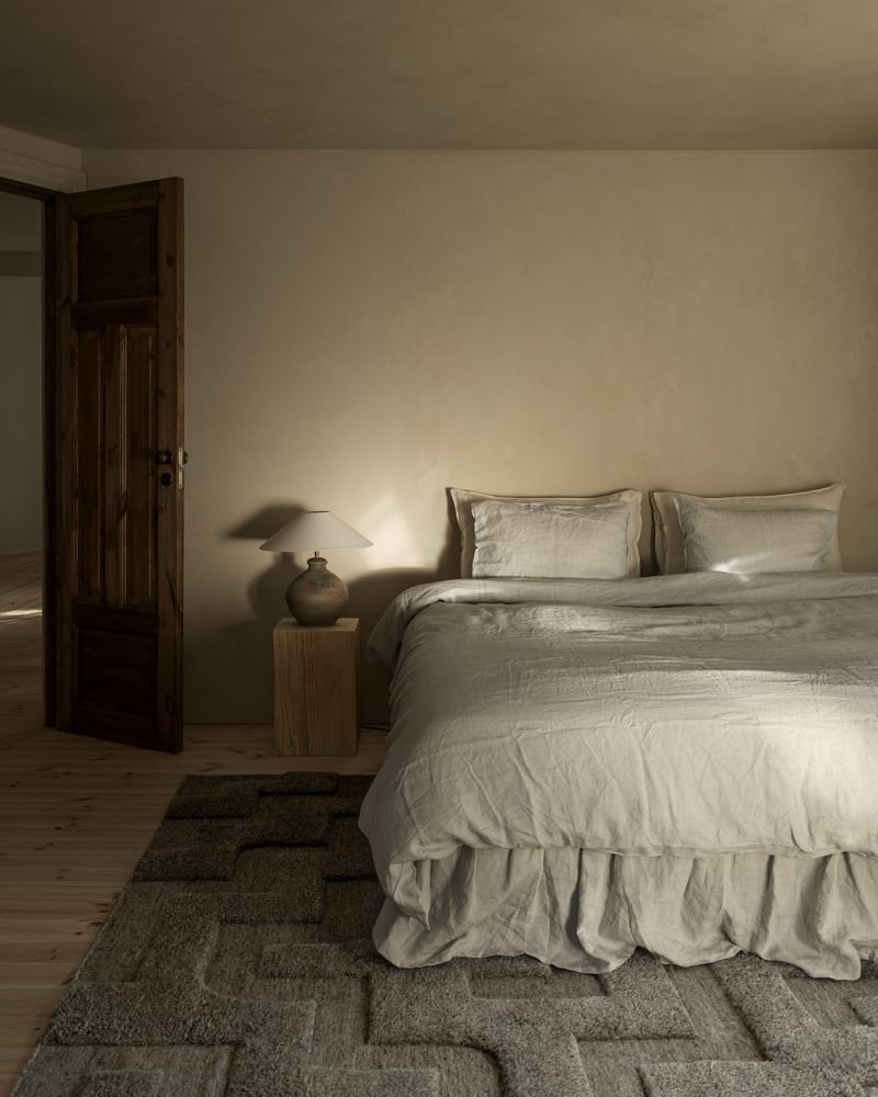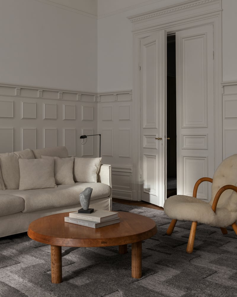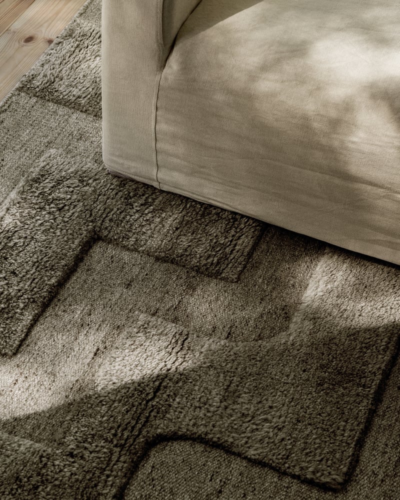 Raw bohemian textures are elevated with architectural lines in Boho, inspired by the limestone steps of grand stairs to historic Stockholm buildings. Crafted from all-natural, undyed European wool to a contemporary geometric pattern that combines a flat-woven canvas with lush hand-knotted pile.