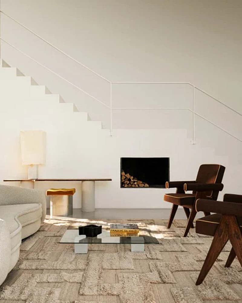 Raw bohemian textures are elevated with architectural lines in Boho, inspired by the limestone steps of grand stairs to historic Stockholm buildings. Crafted from all-natural, undyed European wool to a contemporary geometric pattern that combines a flat-woven canvas with lush hand-knotted pile.
