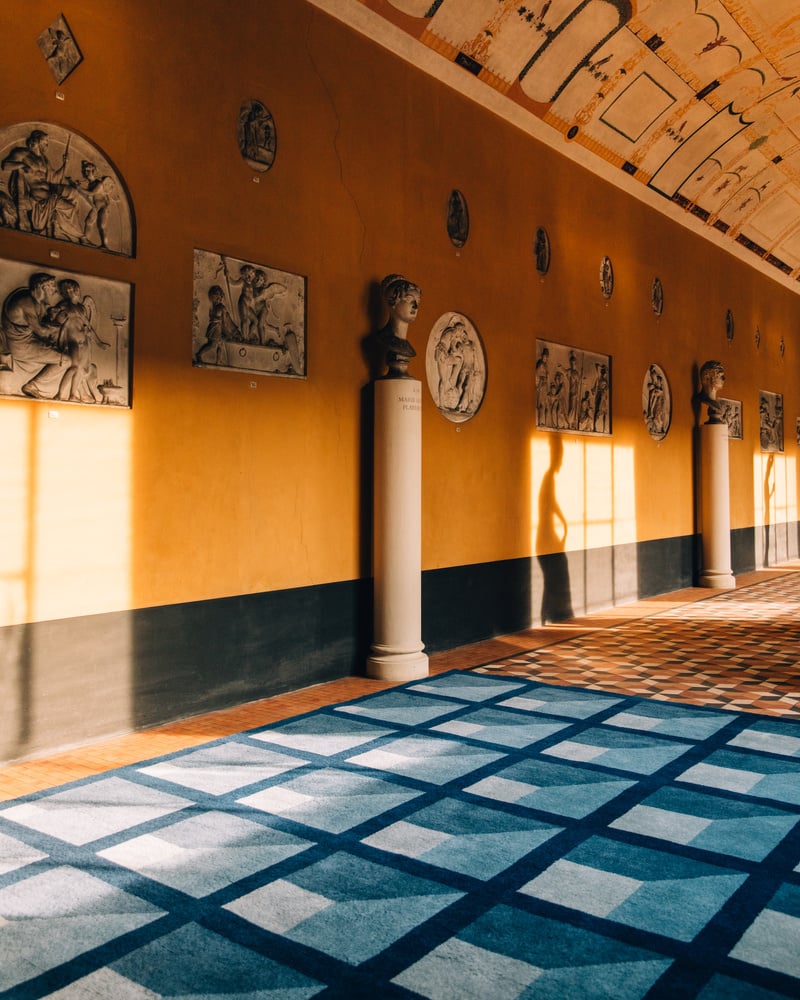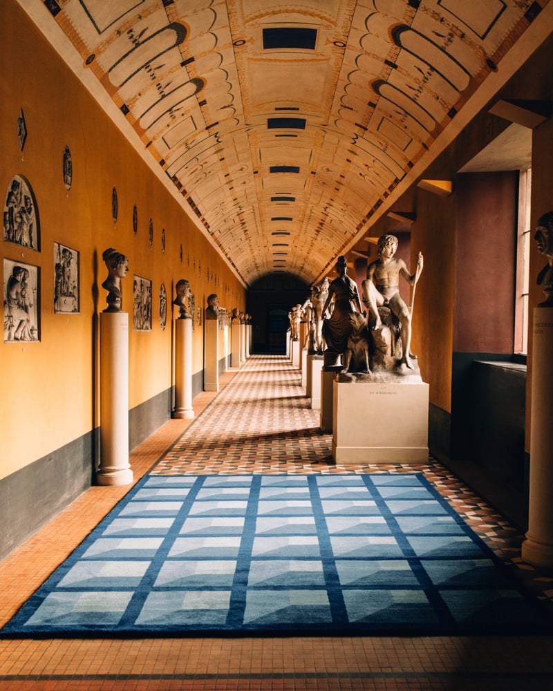 Designed by Campbell-Rey for Nordic Knots. Combining the duo’s captivating use of color and decorative sensibility with the restraint of Nordic neoclassicism. Crafted from supremely soft and durable New Zealand wool, with motifs like the wreath and the folding ribbon alongside ideas inspired by the history of garden design.