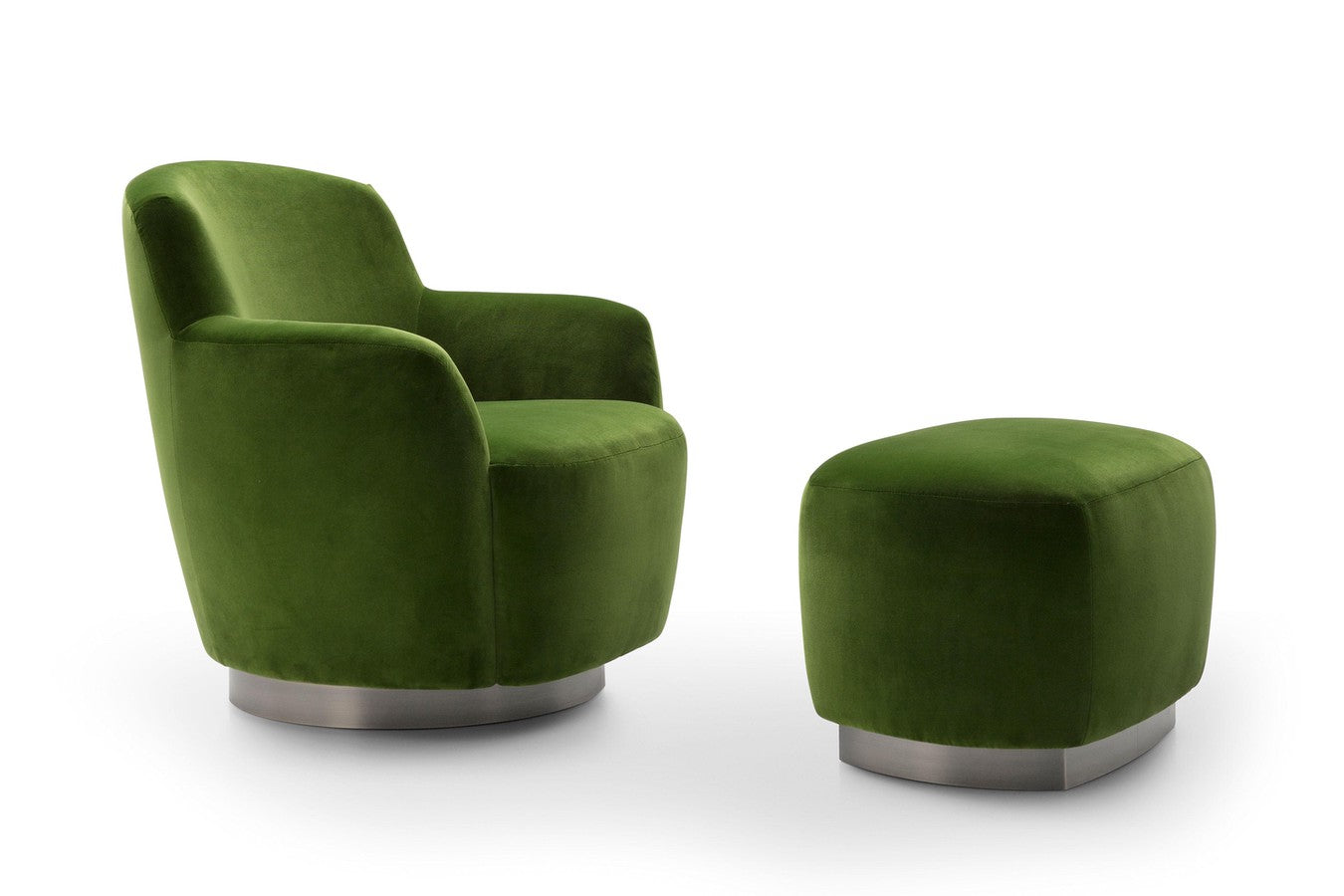 The backrest is available in two heights, this way you can choose between two styles: get a more informal and relaxed seating with the higher back or opt for formality with the lower back. A matching footrest completes the look of this elegant armchair that is welcoming yet in line with a modern sleek aesthetic.