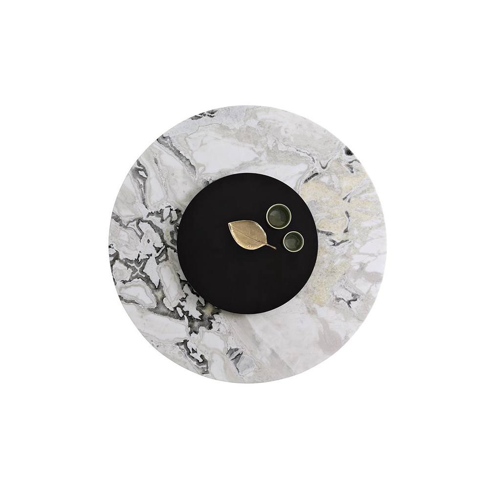 A great addition to refined interiors, this round sculptural table can be complemented with a Lazy Susan turntable. This extra rotating tabletop organizer can be made of marble or MFD lacquered in any RAL colours. It’s the perfect accessory for the gracious host who loves having guests over for luxurious dinners. Choose marble if you want to use the turntable as a statement centrepiece too, or go for a colour you love if you want to add an unexpected accent touch to the table.