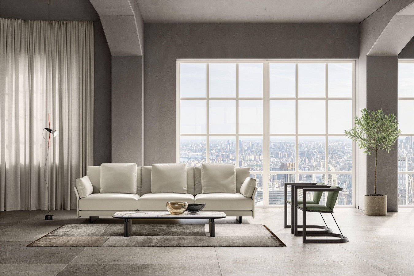 Made to complete a reading armchair or the homonym sectional couch, Sound complements also take centre stage in the middle of the living, where they can organise two-colour or two-material compositions. The combination of noble wooden essences, high-end finishes such as polished or opaque marbles and trendy metallic colours gives birth to highly personalised and aesthetically flawless furniture solutions.
